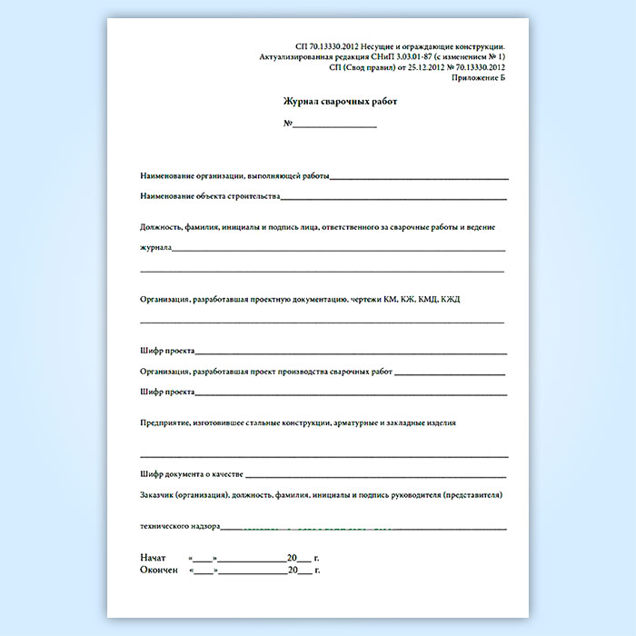 Журнал сварочных работ (приложение к СП 70.13330.2012) в Черкесске купить
