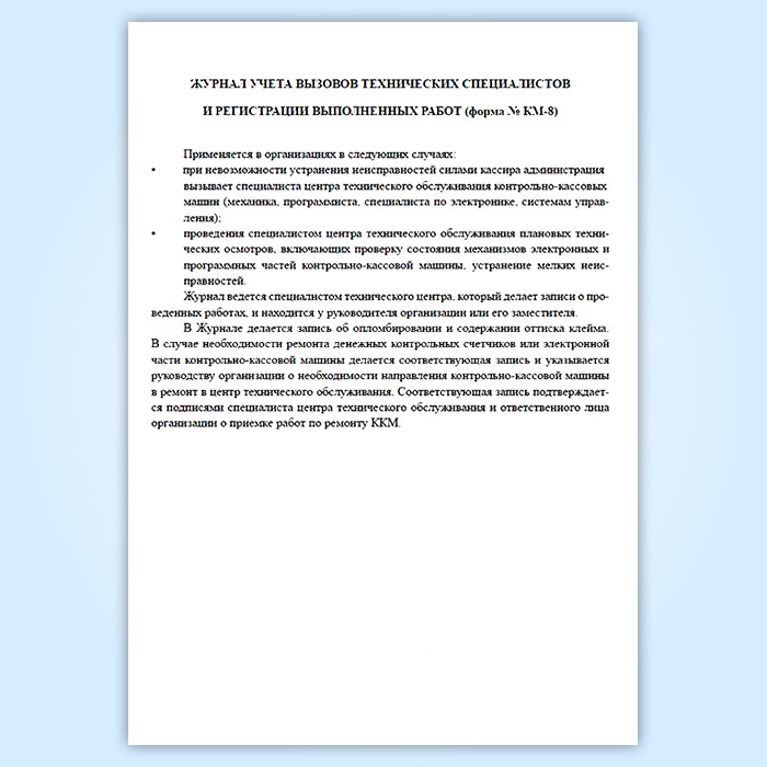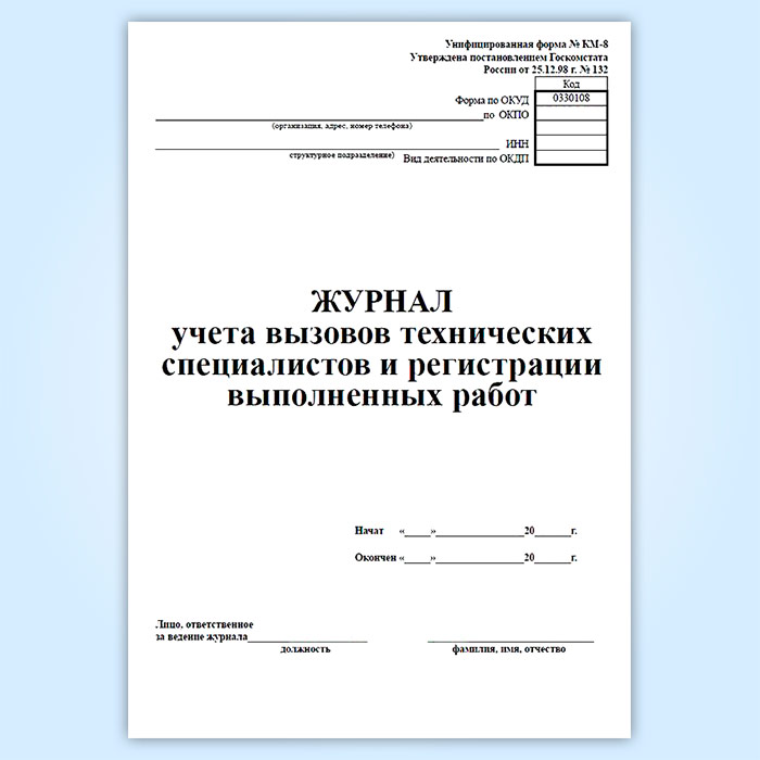 Журнал учета вызовов технических специалистов и регистрации выполненных работ (форма КМ-8) в Черкесске купить