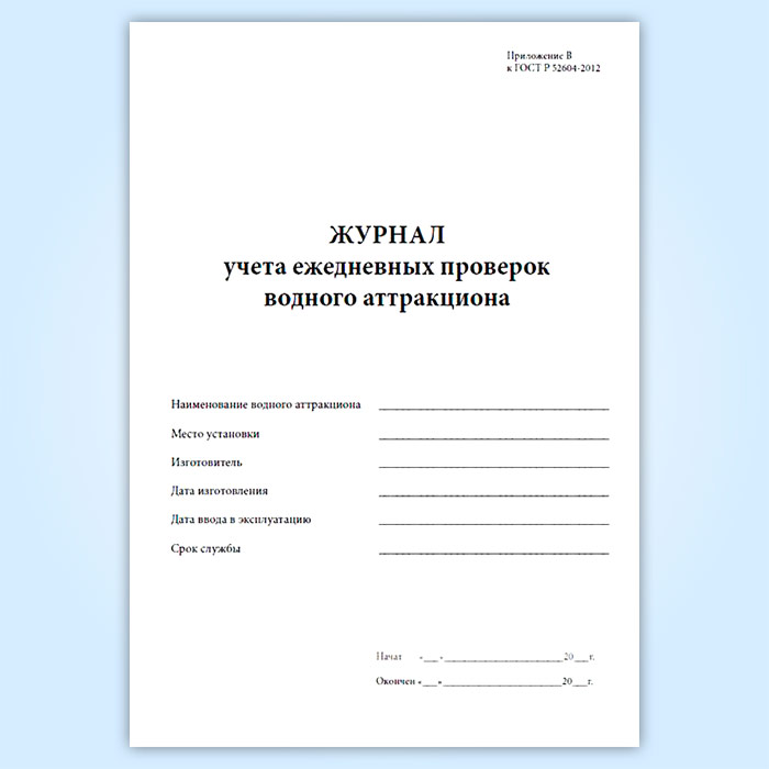 Журнал учета ежедневных проверок водного аттракциона в Черкесске купить