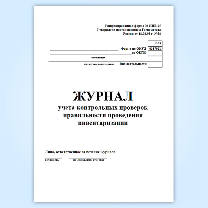 Журнал учета контрольных проверок правильности проведения инвентаризаций (форма ИНВ-25) в Черкесске купить