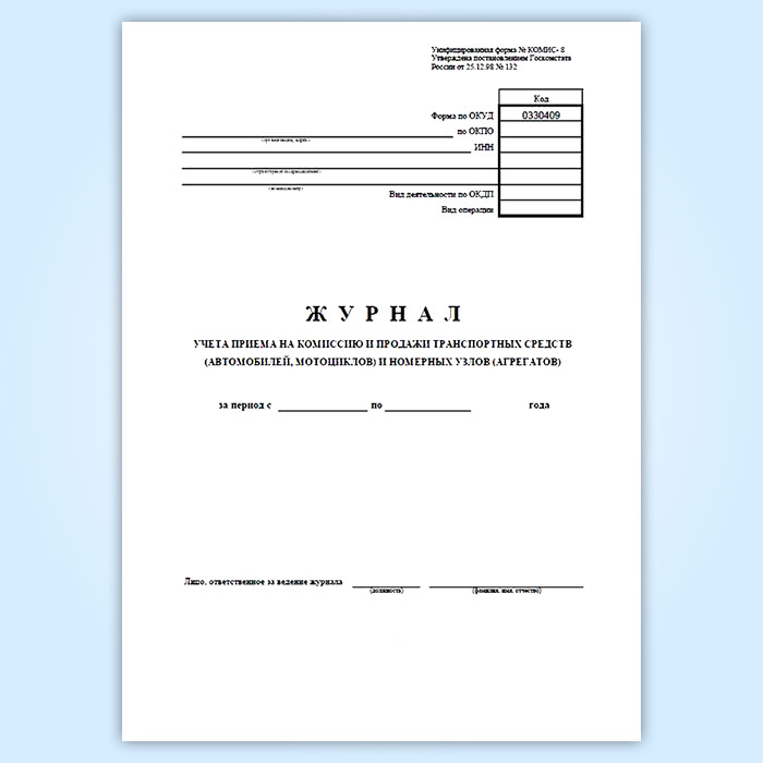 Журнал учета приема на комиссию и продажи транспортных средств (автомобилей, мотоциклов) и номерных узлов (агрегатов) (форма № КОМИС-8) в Черкесске купить