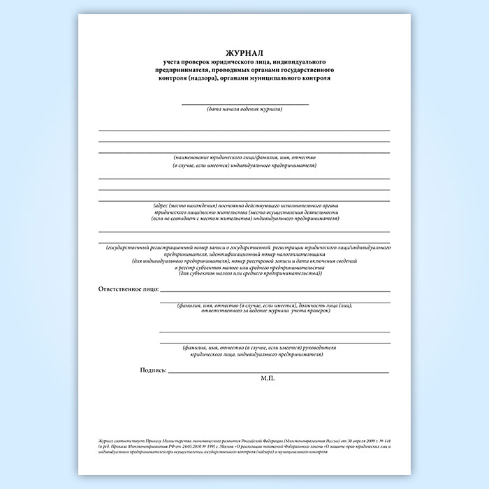 Журнал учета проверок юридического лица, индивидуального предпринимателя, проводимых органами государственного контроля (надзора), органами муниципального контроля (новый) в Черкесске купить
