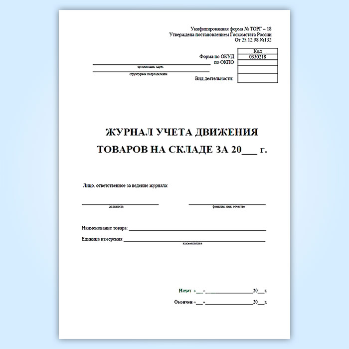 Журнал учета товаров на складе (форма ТОРГ-18) в Черкесске купить