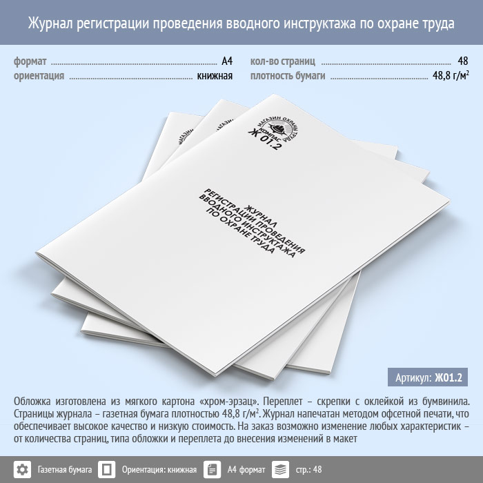 Журнал регистрации проведения вводного инструктажа по охране труда (48 стр., Ж01.2) в Черкесске купить