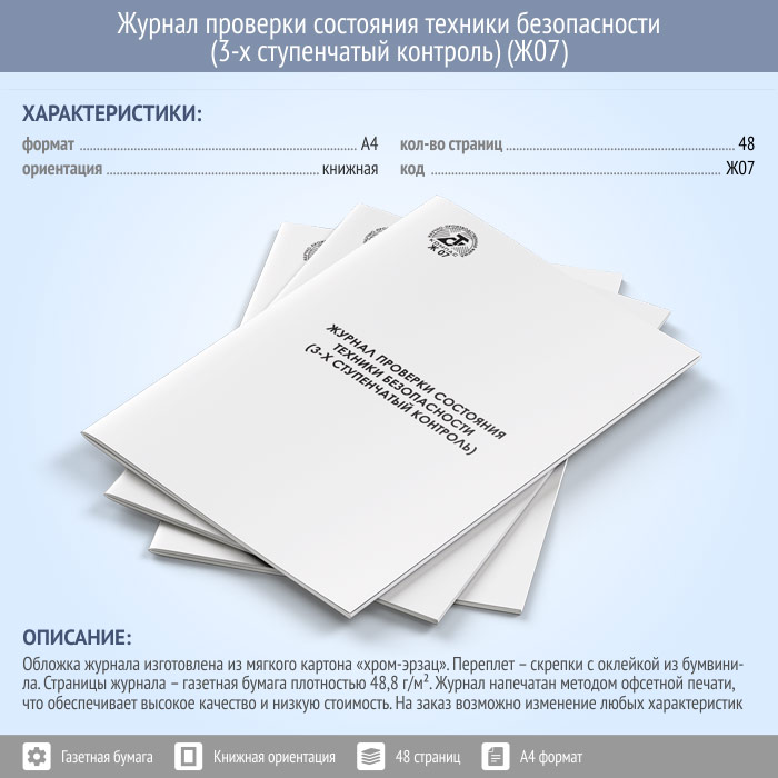 Журнал проверки состояния техники безопасности (3-х ступенчатый контроль, 48 стр., Ж07) в Черкесске купить