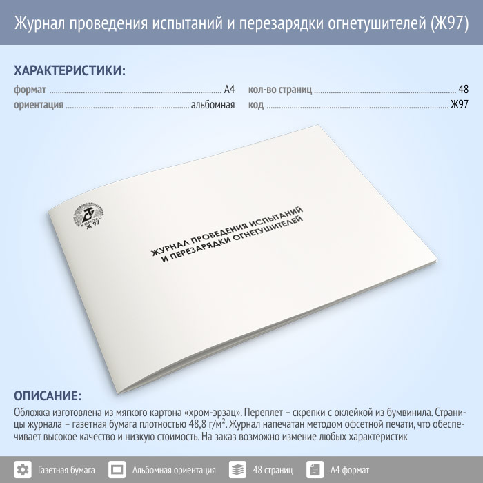Журнал проведения испытаний и перезарядки огнетушителей (48 стр., Ж97) в Черкесске купить
