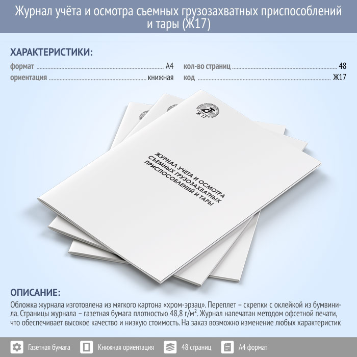 Журнал учета и осмотра съемных грузозахватных приспособлений и тары (48 стр., Ж17) в Черкесске купить