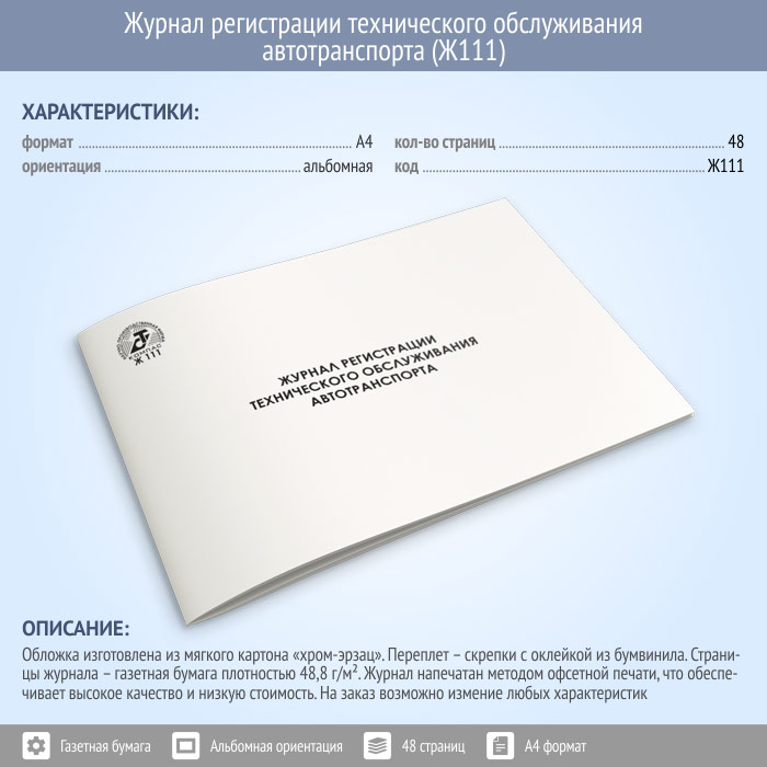 Журнал регистрации технического обслуживания автотранспорта (48 стр., Ж111) в Черкесске купить
