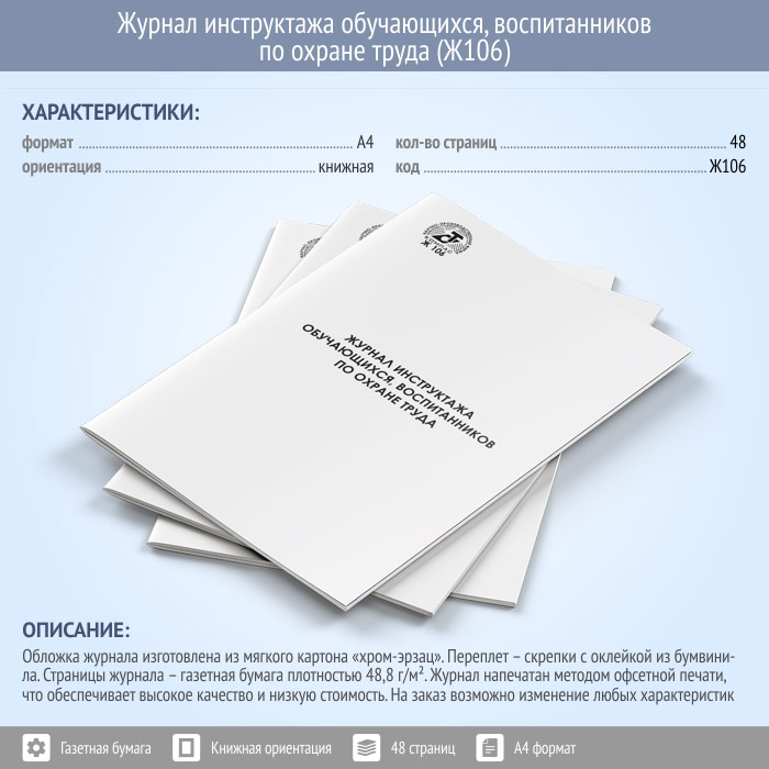 Журнал инструктажа обучающихся, воспитанников по охране труда (48 стр., Ж106) в Черкесске купить