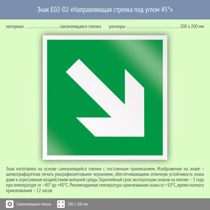Знак E02-02 «Направляющая стрелка под углом 45°» (фотолюм. пленка, 200х200 мм)