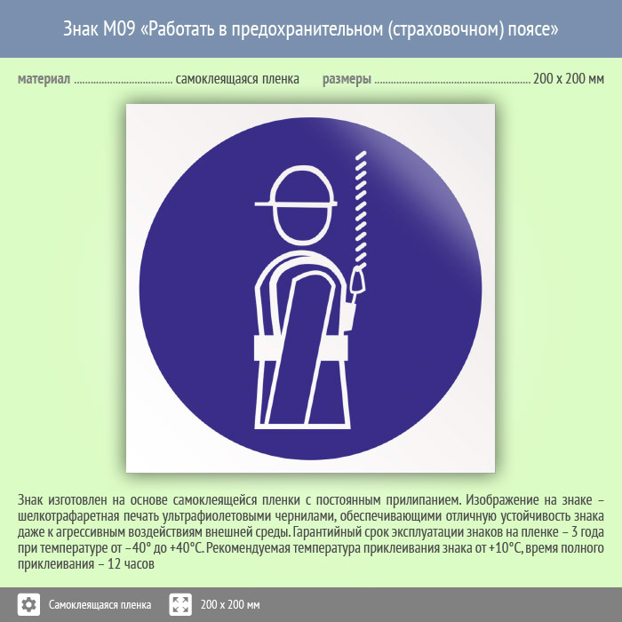 Знак M09 «Работать в предохранительном (страховочном) поясе»