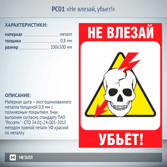 Знак «Не влезай, убьет!», РС01 (металл, 200х300 мм) в Черкесске купить