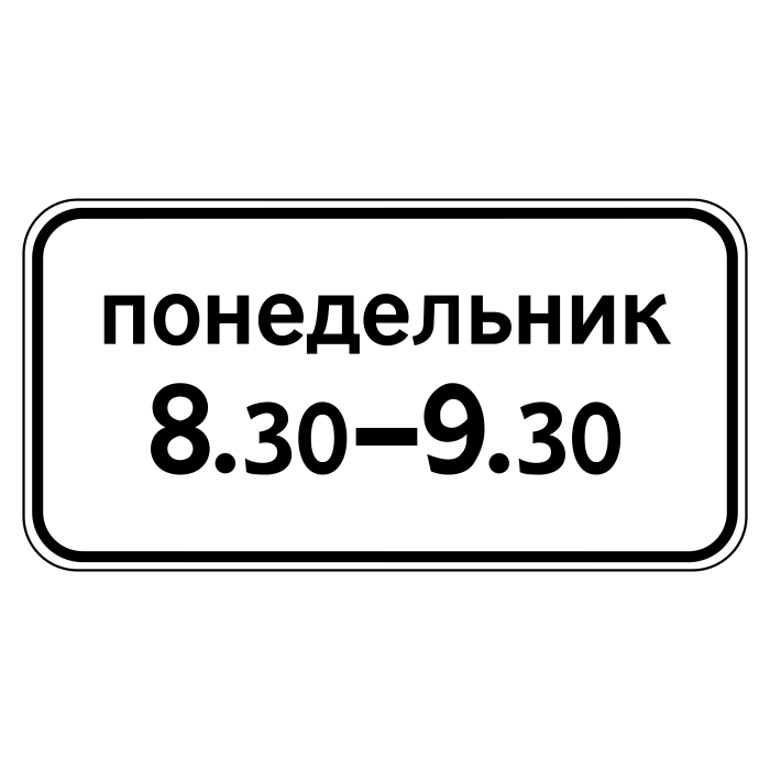Дорожный знак 8.5.7 «Время действия» (металл 0,8 мм, III типоразмер: 450х900 мм, С/О пленка: тип В алмазная) в Черкесске купить