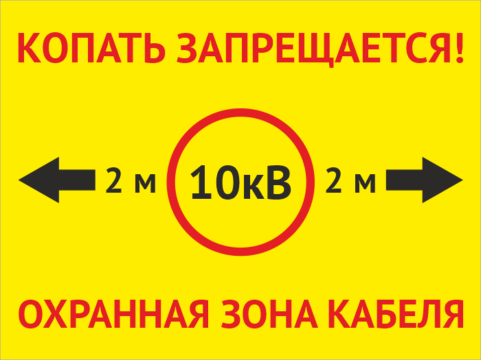 Табличка «Охранная зона кабеля 10 кВ. Копать запрещается», OZK-01 (пластик 2 мм, 400х300 мм) в Черкесске купить