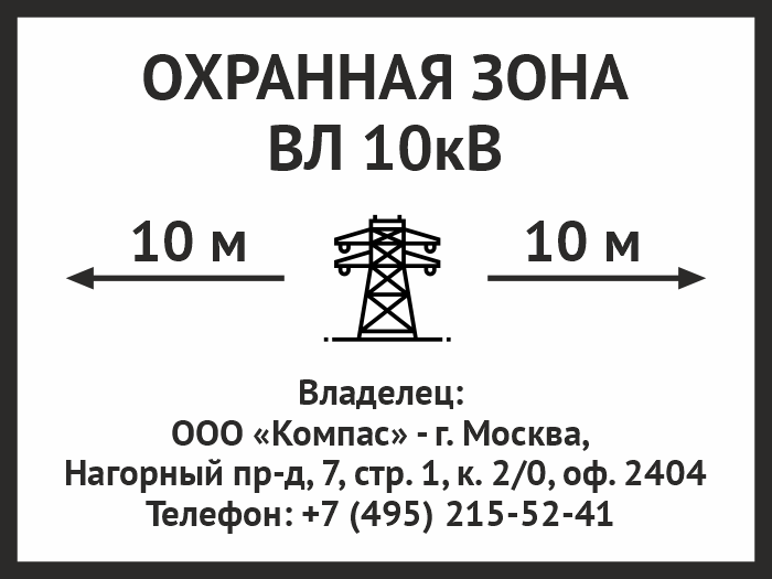 Знак «Охранная зона ВЛ 10 кВ (высоковольтной линии)», OZK-07 (пластик 2 мм, 400х300 мм) в Черкесске купить