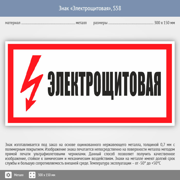 Знак (плакат) «Электрощитовая», S58 (металл, 300х150 мм) в Черкесске купить
