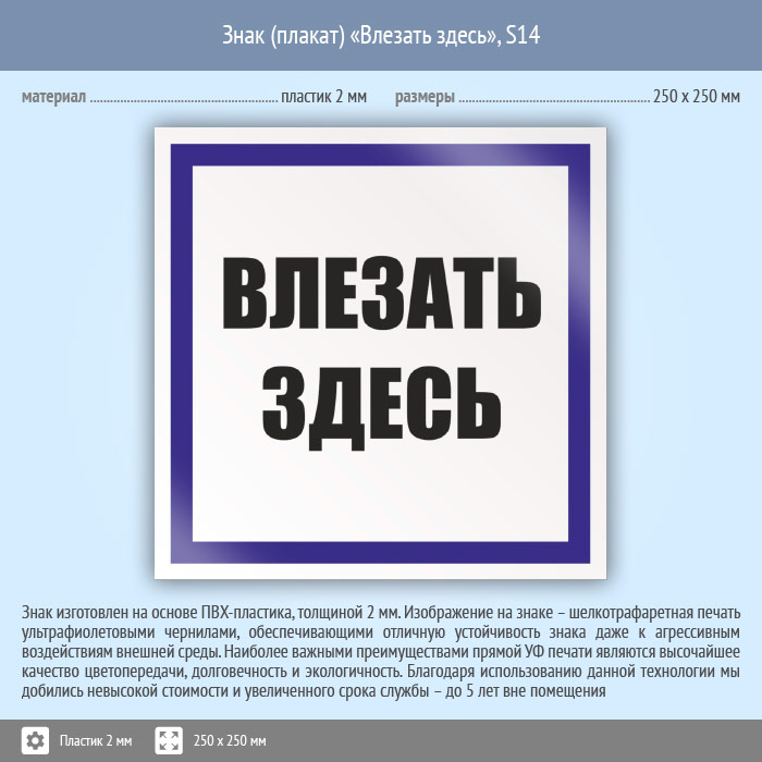 Знак (плакат) «Влезать здесь», S14 (пластик, 250х250 мм) в Черкесске купить