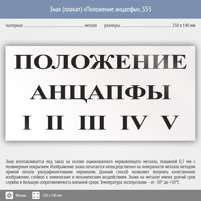 Знак (плакат) «Положение анцапфы», S55 (металл, 250х140 мм) в Черкесске купить