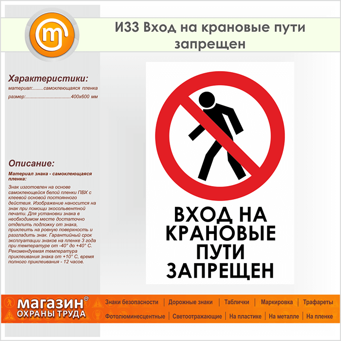 Знак «Вход на крановые пути запрещен», И33 (пленка, 400х600 мм) в Черкесске купить