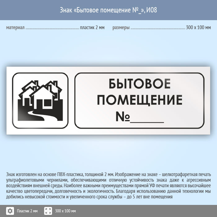 Знак «Бытовое помещение №_», И08 (пластик, 300х100 мм) в Черкесске купить