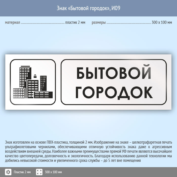 Знак «Бытовой городок», И09 (пластик, 300х100 мм) в Черкесске купить