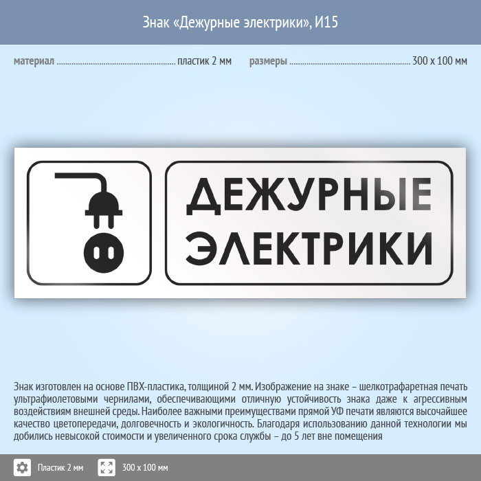 Знак «Дежурные электрики», И15 (пластик, 300х100 мм) в Черкесске купить