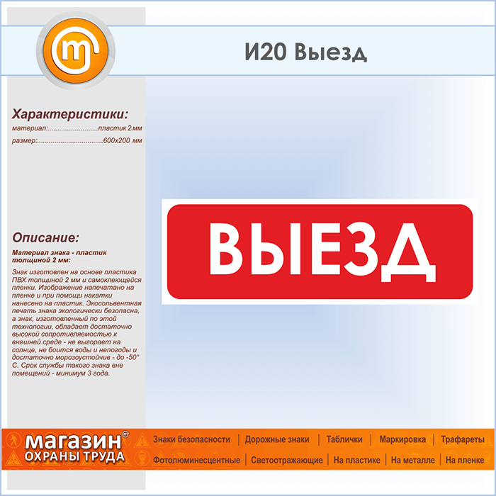 Знак «Выезд», И20 (пластик, 600х200 мм) в Черкесске купить