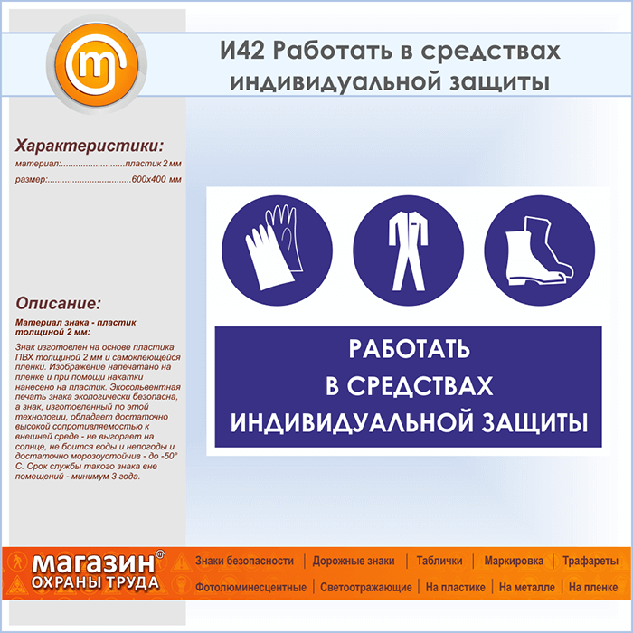 Знак «Работать в средствах индивидуальной защиты», И42 (пластик, 600х400 мм) в Черкесске купить