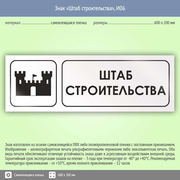 Знак «Штаб строительства», И06 (пленка, 600х200 мм) в Черкесске купить