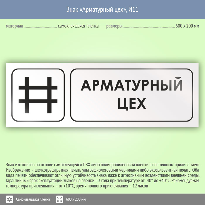 Знак «Арматурный цех», И11 (пленка, 600х200 мм) в Черкесске купить