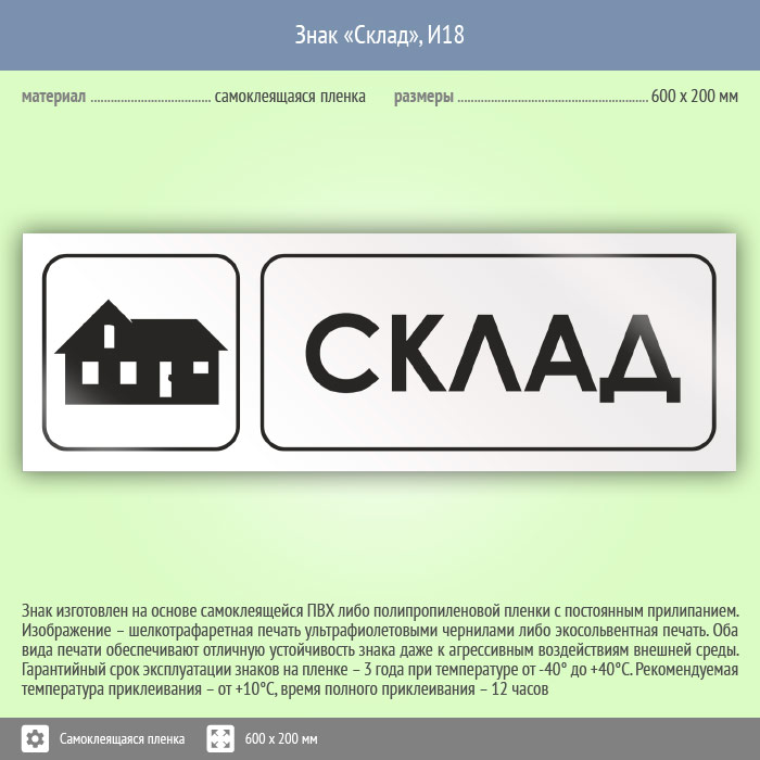 Знак «Склад», И18 (пленка, 600х200 мм) в Черкесске купить