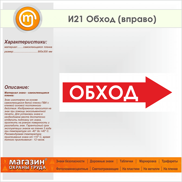 Знак «Обход (вправо)», И21 (пленка, 900х300 мм) в Черкесске купить