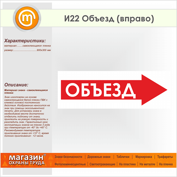 Знак «Объезд (вправо)», И22 (пленка, 900х300 мм) в Черкесске купить