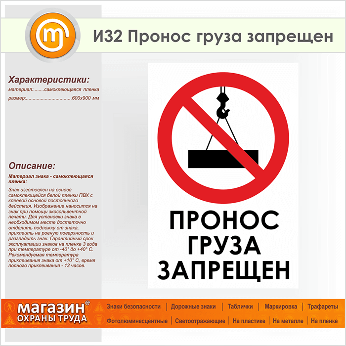 Знак «Пронос груза запрещен», И32 (пленка, 600х900 мм) в Черкесске купить