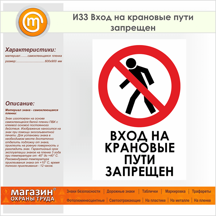 Знак «Вход на крановые пути запрещен», И33 (пленка, 600х900 мм) в Черкесске купить
