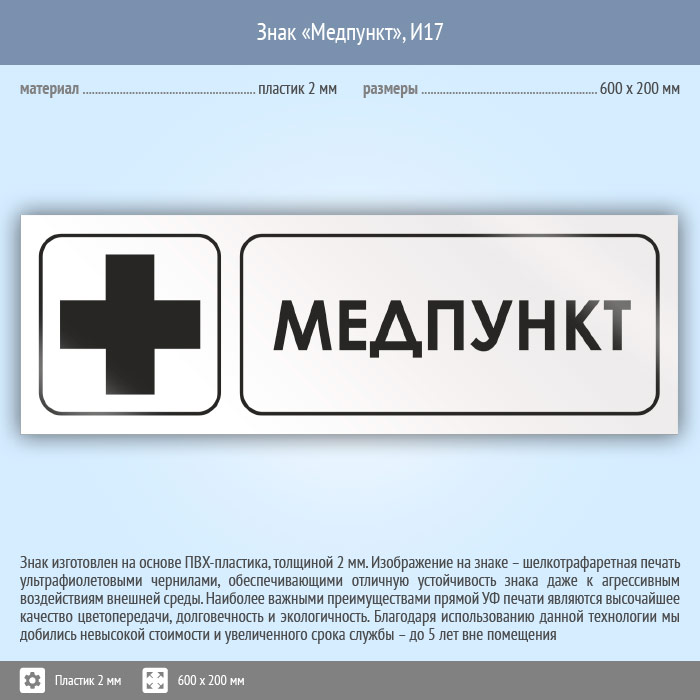 Знак «Медпункт», И17 (пластик, 600х200 мм) в Черкесске купить