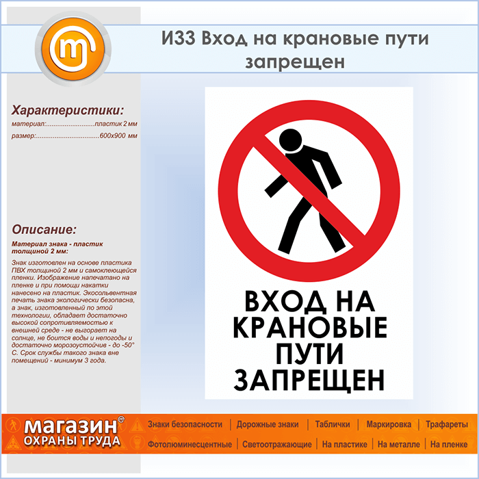 Знак «Вход на крановые пути запрещен», И33 (пластик, 600х900 мм) в Черкесске купить