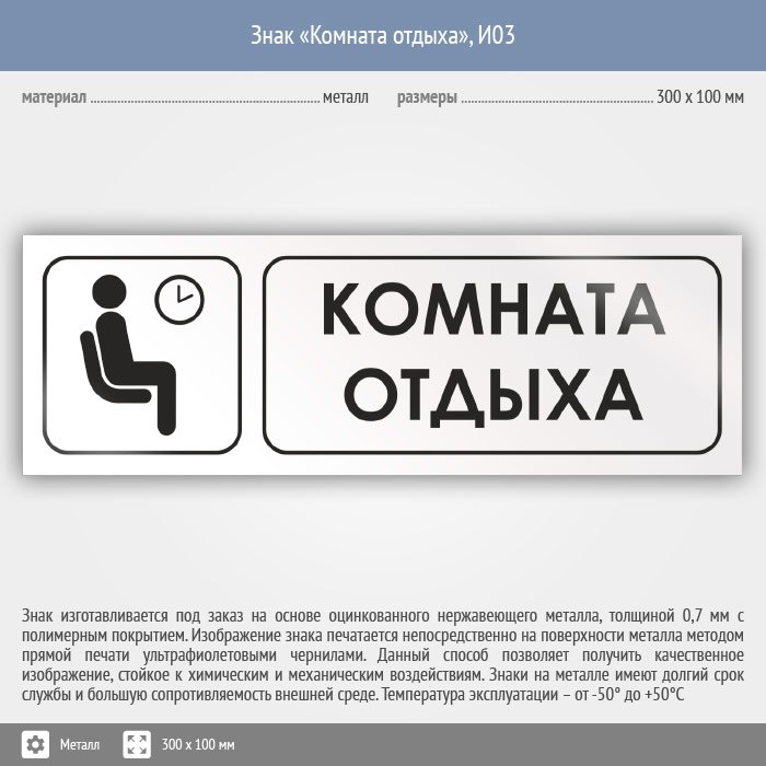 Знак «Комната отдыха», И03 (металл, 300х100 мм) в Черкесске купить