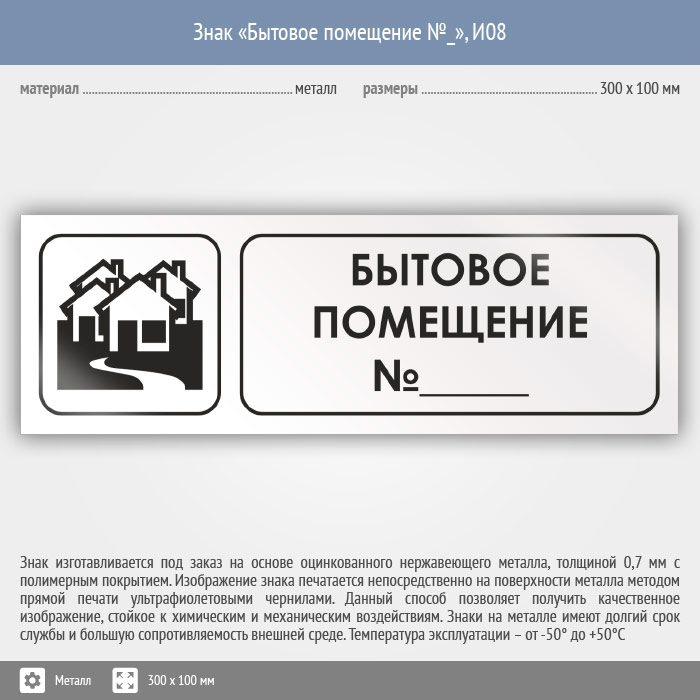 Знак «Бытовое помещение №_», И08 (металл, 300х100 мм) в Черкесске купить