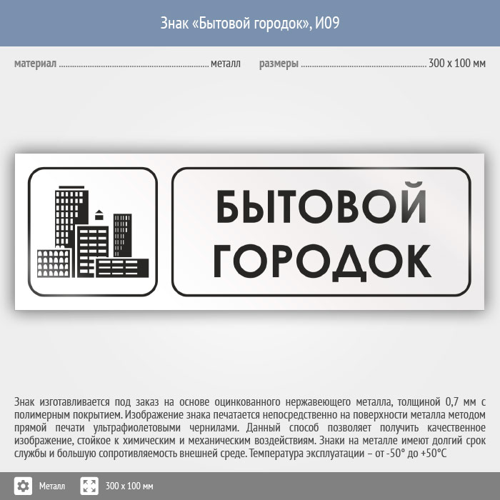 Знак «Бытовой городок», И09 (металл, 300х100 мм) в Черкесске купить