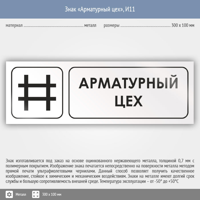 Знак «Арматурный цех», И11 (металл, 300х100 мм) в Черкесске купить