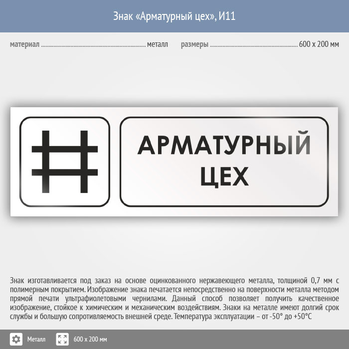 Знак «Арматурный цех», И11 (металл, 600х200 мм) в Черкесске купить