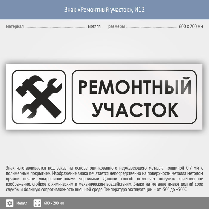 Знак «Ремонтный участок», И12 (металл, 600х200 мм) в Черкесске купить