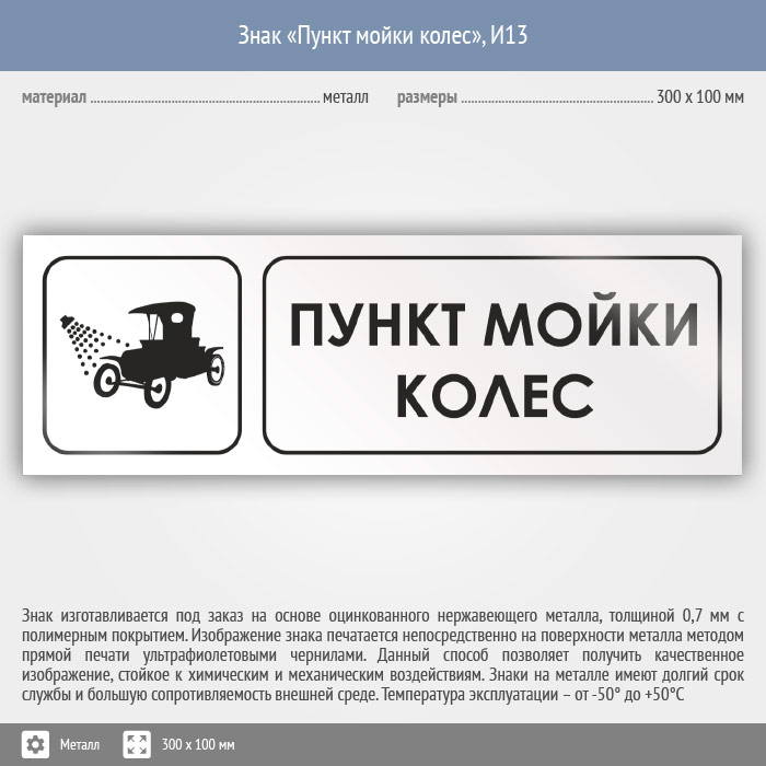 Знак «Пункт мойки колес», И13 (металл, 300х100 мм) в Черкесске купить