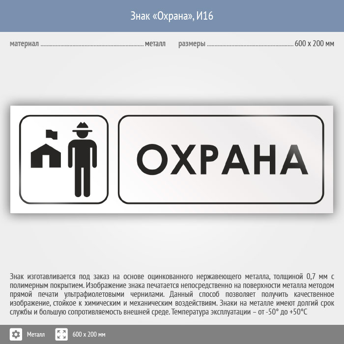 Знак «Охрана», И16 (металл, 600х200 мм) в Черкесске купить