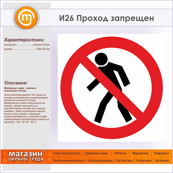 Знак «Проход запрещен», И26 (металл, 700х700 мм) в Черкесске купить