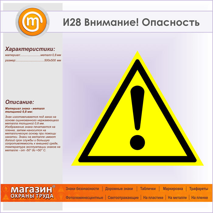 Знак «Внимание! Опасность», И28 (металл, сторона 500 мм) в Черкесске купить