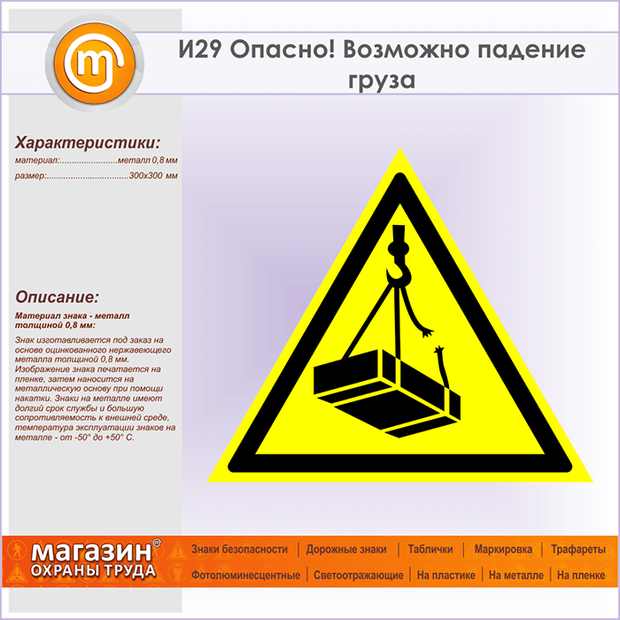 Знак «Опасно! Возможно падение груза», И29 (металл, сторона 300 мм) в Черкесске купить