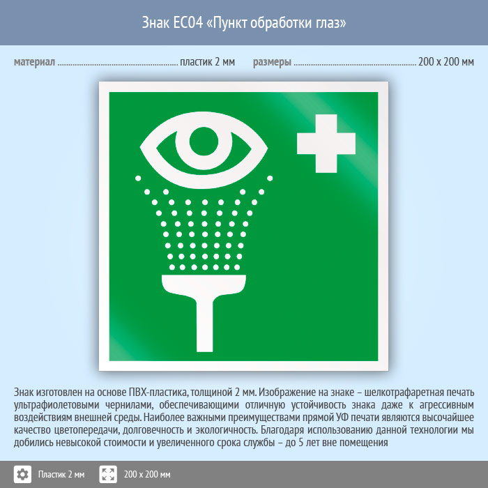 Знак EC04 «Пункт обработки глаз» (пластик, 200х200 мм) в Черкесске купить