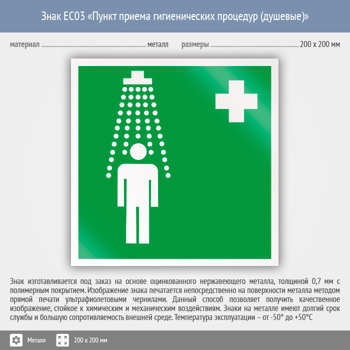 Знак EC03 «Пункт приема гигиенических процедур (душевые)» (металл, 200х200 мм) в Черкесске купить